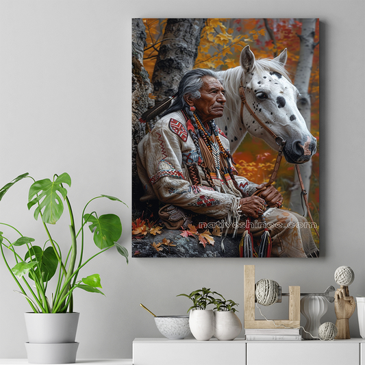 Elder and Steed in Autumn's Splendor Native American Canvas