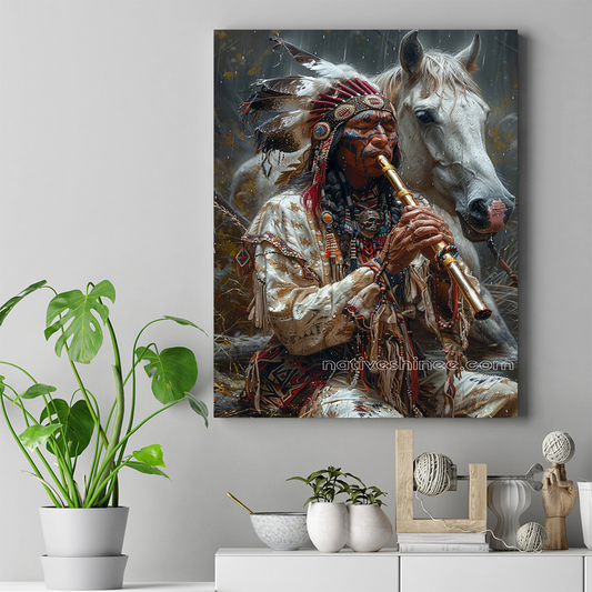 Proud Native American Warrior in Winter Native American Horse Canvas
