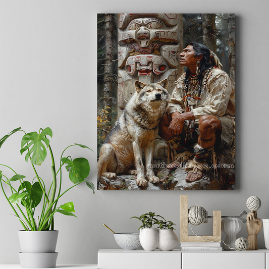 The Sacred Bond: Family, Nature, and Heritage Native American Wolf Canvas