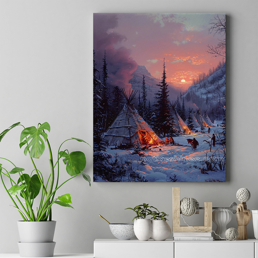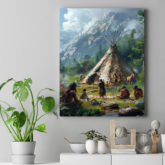 Teepee in Autumn: Harmony of Seasons Native American Canvas