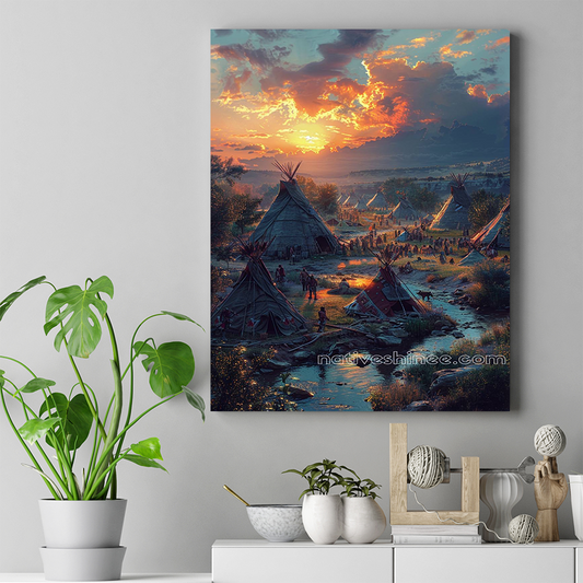 Native Village Life Unfolds Native American Canvas