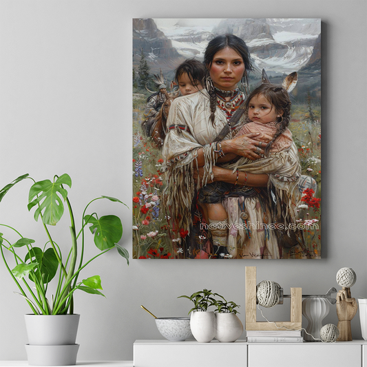 A Mother's Protective Embrace Native American Canvas