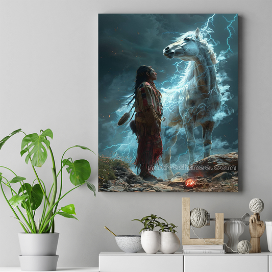 Sacred Connection with Lightning Horse Native American Horse Canvas