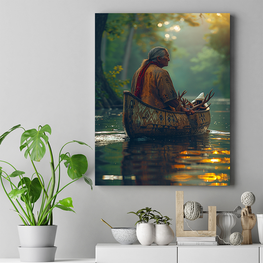 Mother and Daughter in Harmony with Nature Native American Canvas