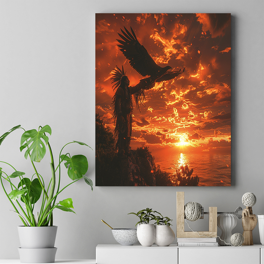 Lone Warrior and the Watchful Wolf Native American Canvas