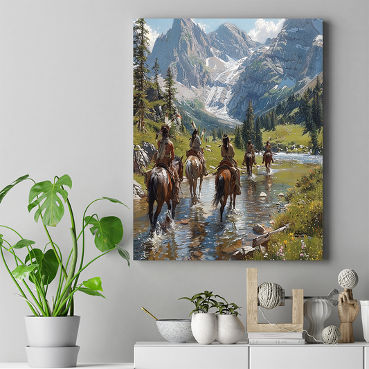 Autumn Trek Amongst the Peaks Native American Horse Canvas