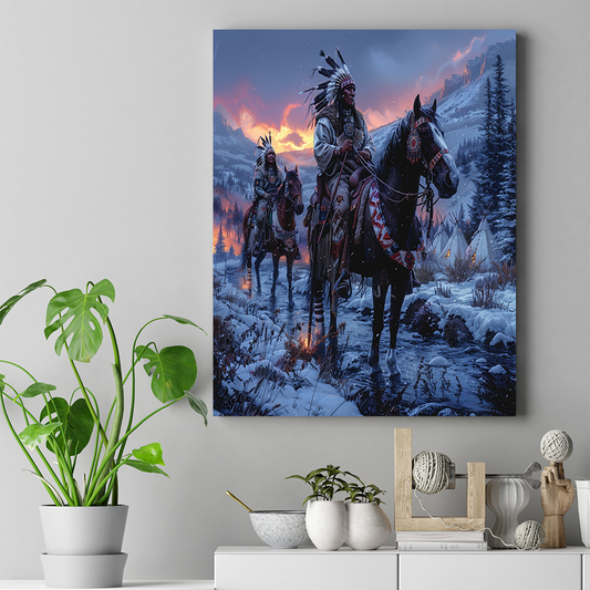 Winter's Warmth in the Wilderness Native American Canvas