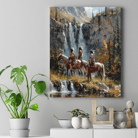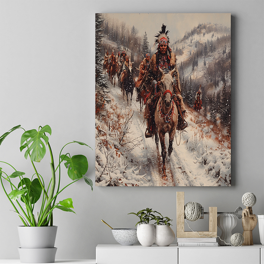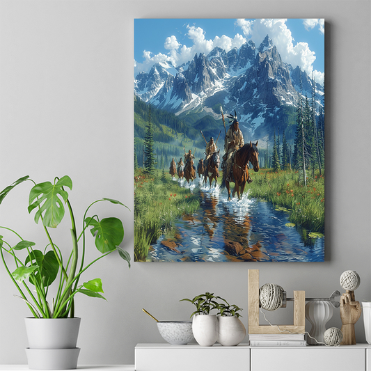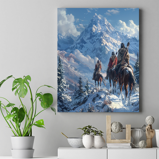 Riders of the Snow-Capped Peaks Native American Horse Canvas