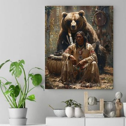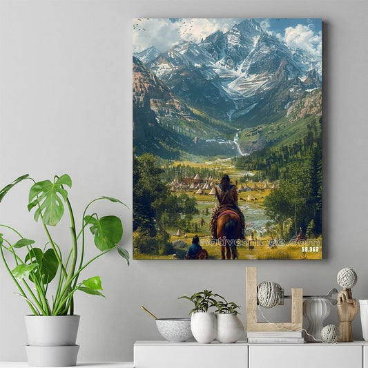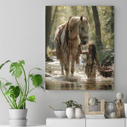 Guiding Spirit - Young Soul with a Loyal Companion Native American Canvas