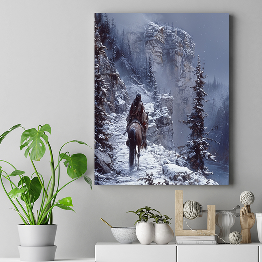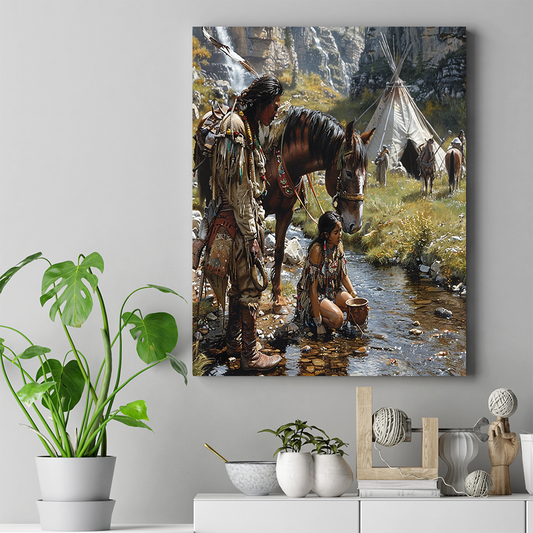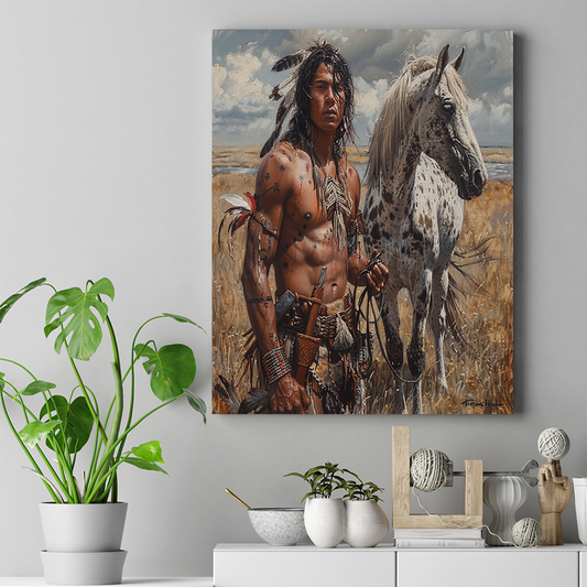 Footprints of Pride and Tradition Native American White Horse Canvas