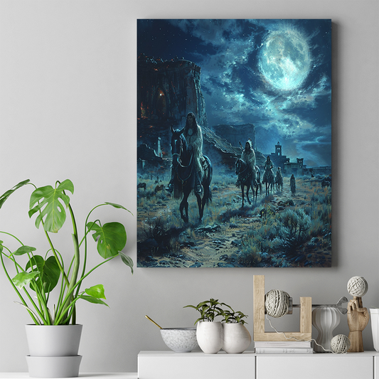 Warriors Guided by the Camp Flames Native American Horse Canvas