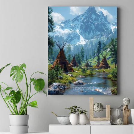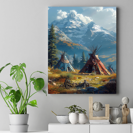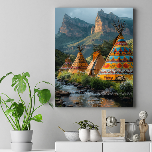 Vibrant Teepees in the Mountain Valley Native American Canvas