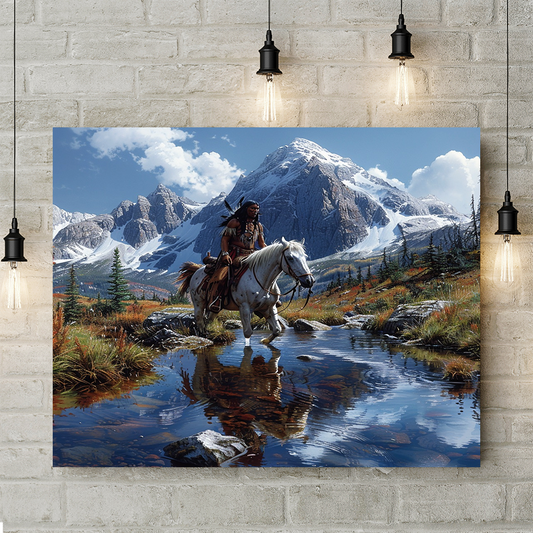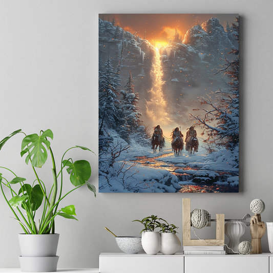 A Native Warrior's Path Amidst Winter's Chill Horse Canvas