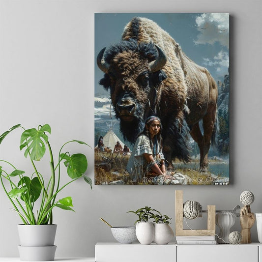 Guardian Spirit: Native Warrior and Bison Canvas