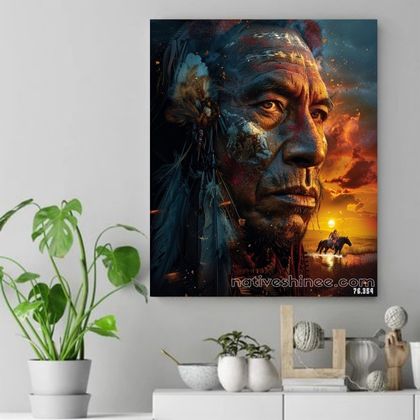 Guardian of the Canyon: Native Warrior at Sunset Native American Canvas