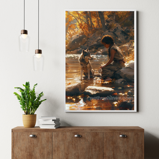 Child and Bear: Spirits Intertwined Native American Bear Canvas