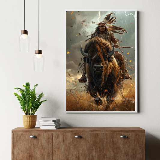 Warrior and Wolf: Spirit Bond Native American Canvas