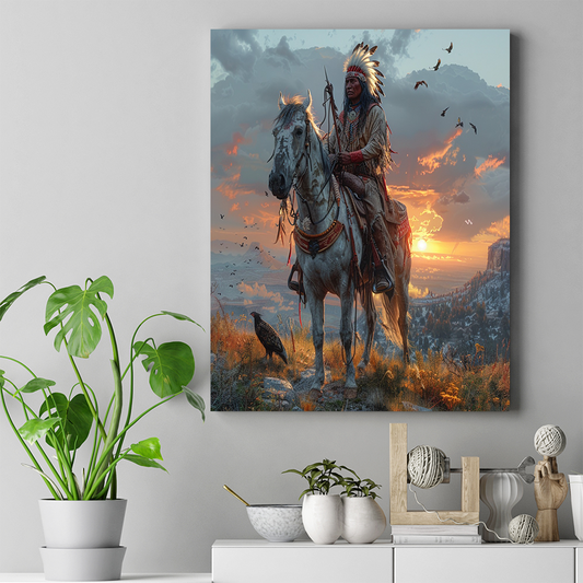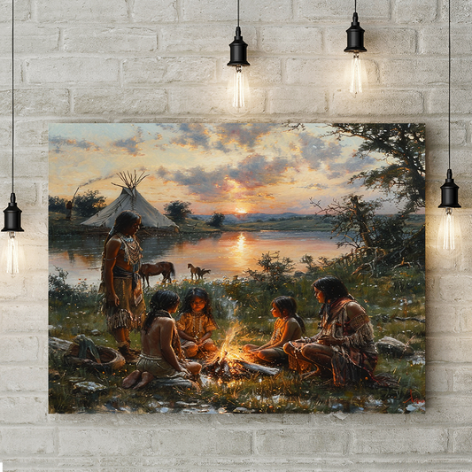 Golden Sunset and Timeless Traditions Native American Canvas
