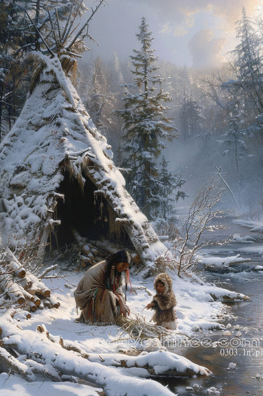 Into the Silent Wilderness: A Winter's Journey Native American Canvas