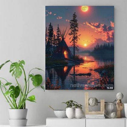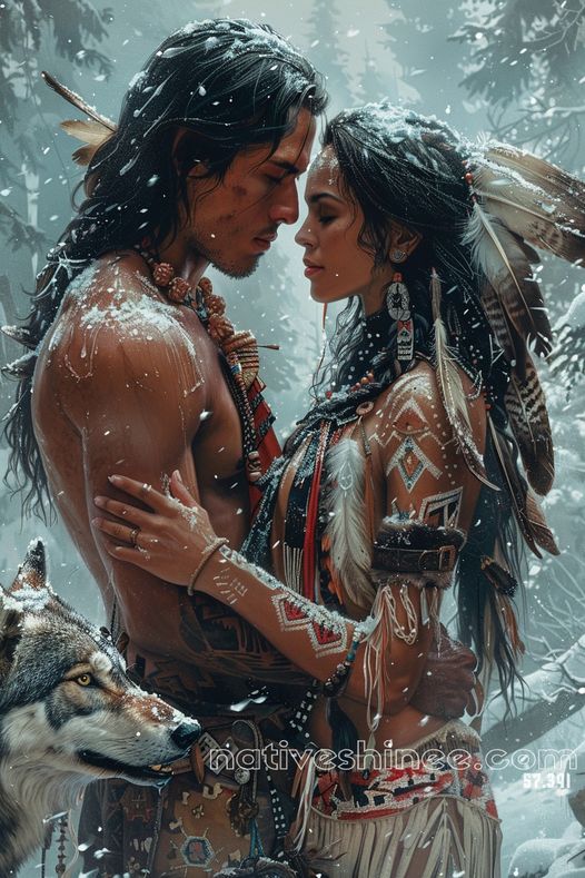 Eternal Bond in Winter’s Embrace Native American Canvas