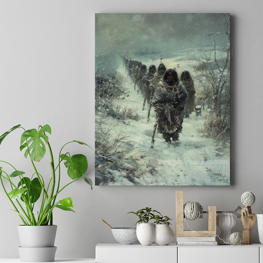 The Unyielding Journey: Through Snow and Struggle Native American Canvas VA