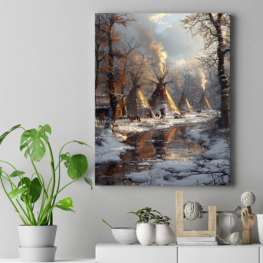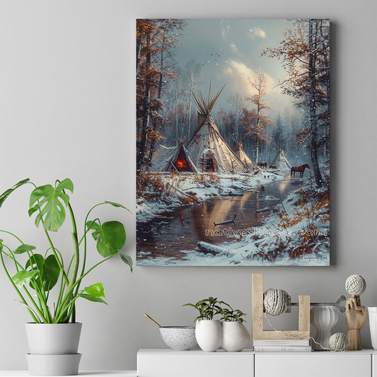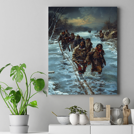 Winter's Embrace: Native Brotherhood Native American Canvas