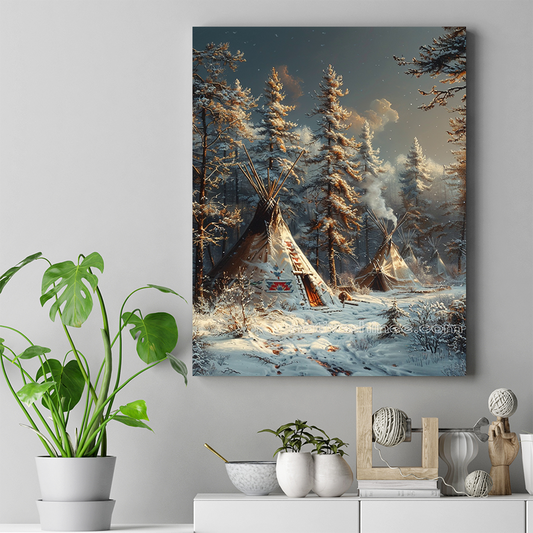 Sunrise Over Snow-Covered Teepees Native American Canvas