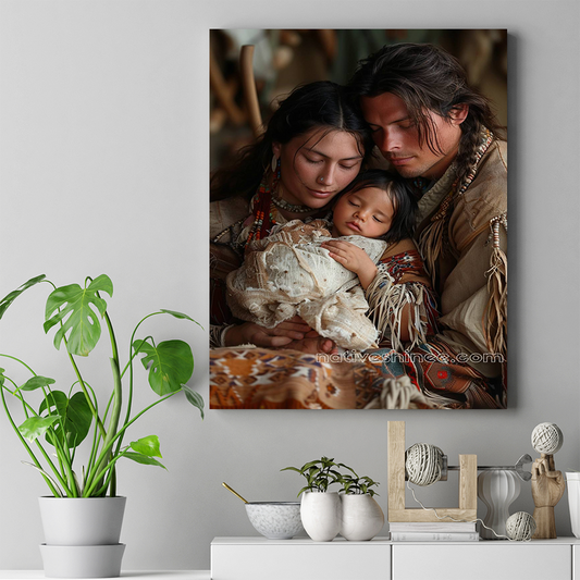 Winter's Warmth in a Teepee Twilight Native American Canvas