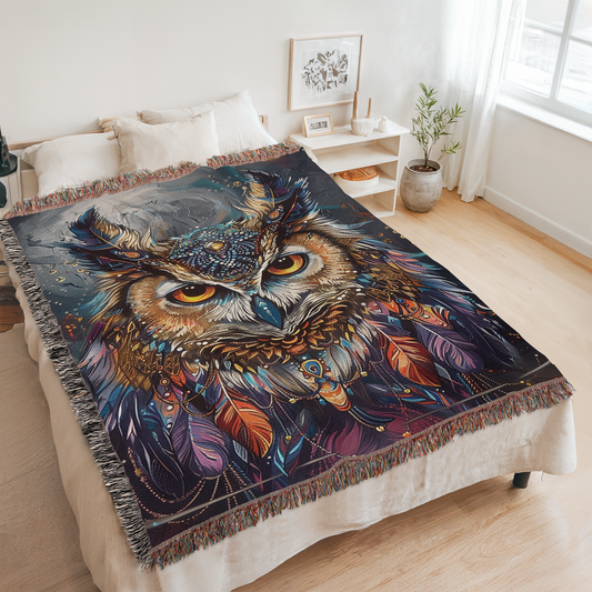 Enchanted Owl Native American Woven Blanket