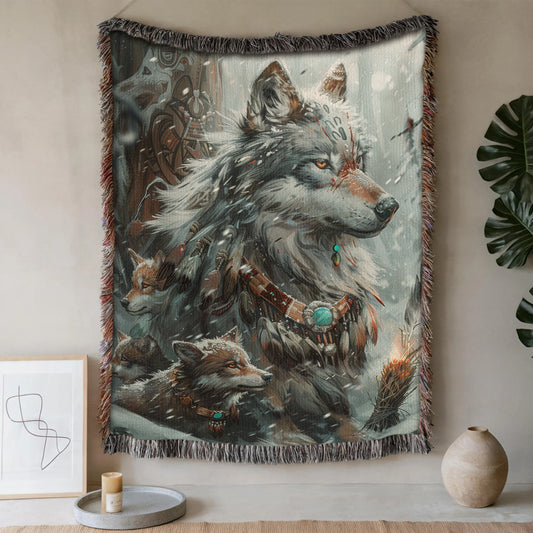 Winter Wolf Nest Woven Blanket