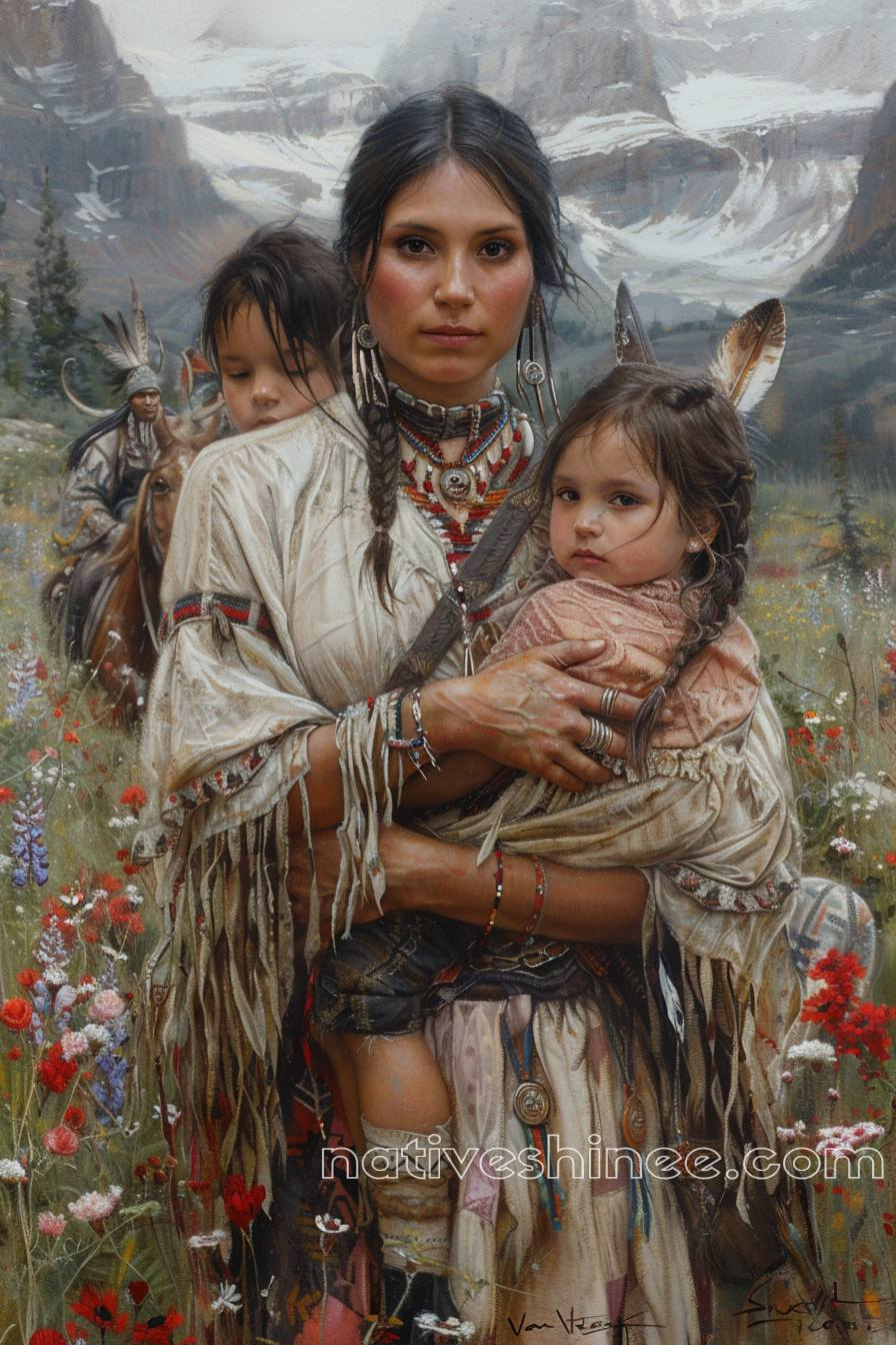 The **A Mother's Protective Embrace Native American Canvas** captures the profound bond between a mother and her child, illustrating themes of love, strength, and nurturing that are central to Native American culture. This striking artwork features intricate details and vibrant colors that symbolize the protective spirit of motherhood. The serene imagery reflects a safe haven, emphasizing the deep connection between family and heritage. Crafted with high-quality materials, this canvas not only enhances your home décor but also serves as a meaningful tribute to the sacred role of mothers in indigenous communities. Perfect for those who appreciate cultural depth and artistic beauty.
