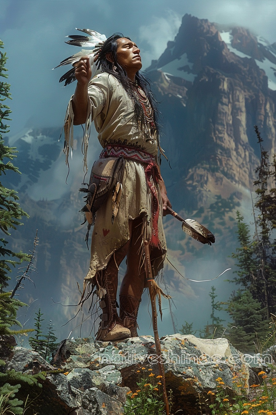 A Native Warrior's Reverence for the Mountains Native American Canvas