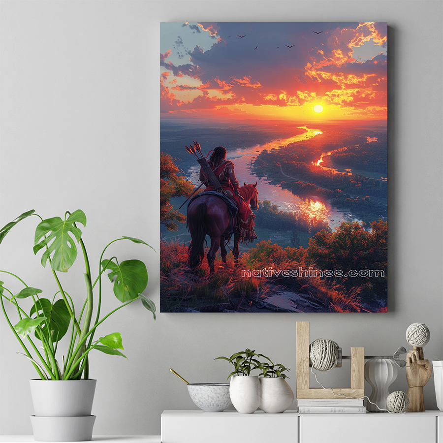 A Warrior’s View of the Eternal Sunset Native American Canvas captures the powerful spirit and connection between Native American warriors and nature. This vibrant canvas showcases a breathtaking sunset, symbolizing strength, courage, and timeless beauty. Perfect for enhancing any home or office, this artwork adds cultural depth and a touch of serenity to your space. Made with premium materials for long-lasting durability, it brings the essence of Native American traditions and stunning landscapes into your decor. Ideal for those who appreciate history, spirituality, and the majestic beauty of nature.