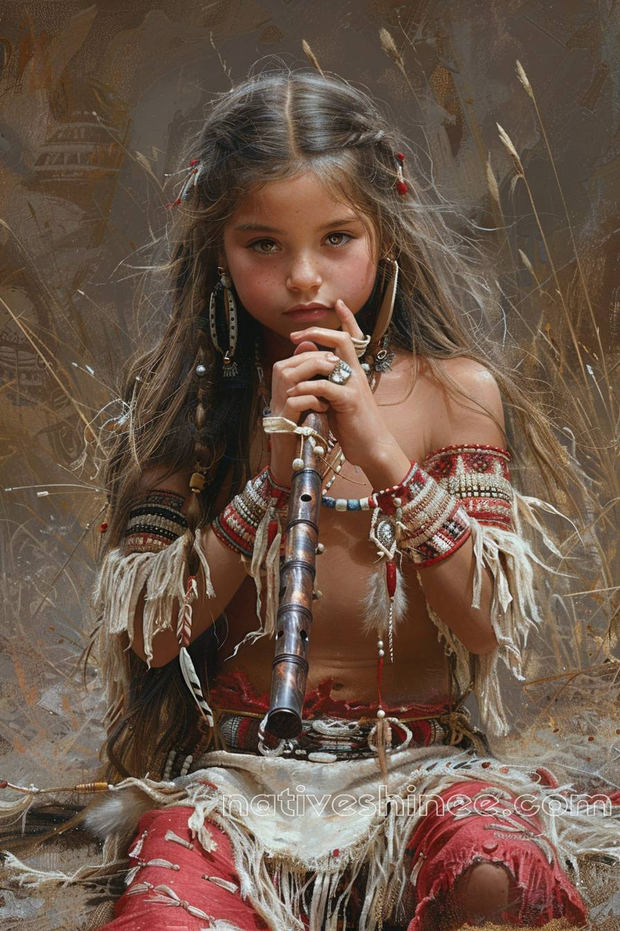 Introducing "A Young Native American Girl with Her Flute Canvas", a heartwarming and culturally rich artwork that captures a serene moment of musical expression. This beautifully detailed canvas portrays a young Native American girl playing her flute, symbolizing the deep connection between music, tradition, and nature. The soft, earthy tones and intricate details make this piece a captivating addition to any space, adding warmth and cultural depth to your home decor. Perfect for those who appreciate indigenous art and the power of music, this high-quality canvas offers both beauty and meaning.