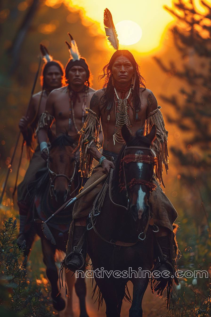 The "Brave Riders of the Morning Light Native American Canvas" captures the powerful image of Native American warriors riding at dawn, bathed in the golden light of the early morning. This artwork symbolizes courage, strength, and the spirit of adventure, as the warriors and their horses move with purpose across the open landscape. The rich colors and dynamic composition evoke a sense of movement and vitality, reflecting the bravery and unity of the riders. Perfect for those who admire Native American culture, this high-quality canvas adds energy and inspiration to any space, celebrating the timeless bond between man, horse, and nature.
