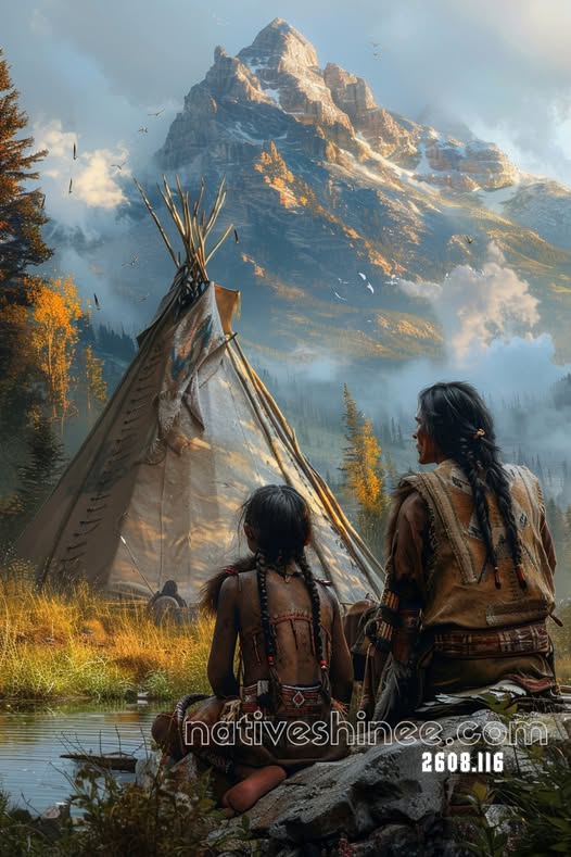 This canvas portrays a Native American elder kneeling in a snow-dusted forest, his face etched with wisdom and painted with tribal symbols, his robe adorned with intricate beadwork and raven feathers. He chants softly, holding a drum, as a raven perches nearby, its dark wings contrasting with the white snow. The scene is set under a pale winter sky, with tall pines and bare branches framing a frozen stream reflecting the faint light. Distant mountains loom through the mist, adding a mystical depth to the serene landscape. The interplay of light and shadow highlights the texture of his robe, the raven’s feathers, and the icy ground, creating a tranquil yet spiritual atmosphere. A wolf’s silhouette appears in the distance, enhancing the wild connection to nature. The elder’s pose exudes reverence, as if his chant summons the spirit of the forest. This artwork captures a moment of sacred communion with the winter wilderness, evoking peace and the enduring bond between human and nature. The detailed composition invites viewers to feel the quiet power of the snowy chant.