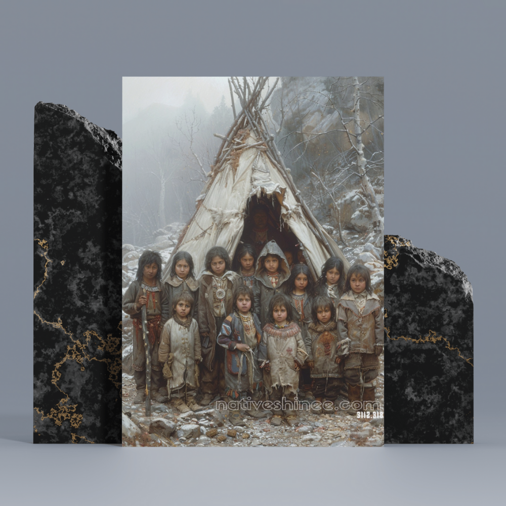 Experience the timeless beauty of the Children in Winter Native American Canvas, capturing a serene moment of Native American children standing together against a snow-covered backdrop. This striking piece highlights the unity and resilience of the Native American culture, portrayed with vibrant details and natural beauty. The quality canvas print brings the history and spirit of the Native American way of life into your home. Ideal for those who appreciate cultural heritage and nature-inspired art, it will surely enhance any space with its rich, authentic feel.