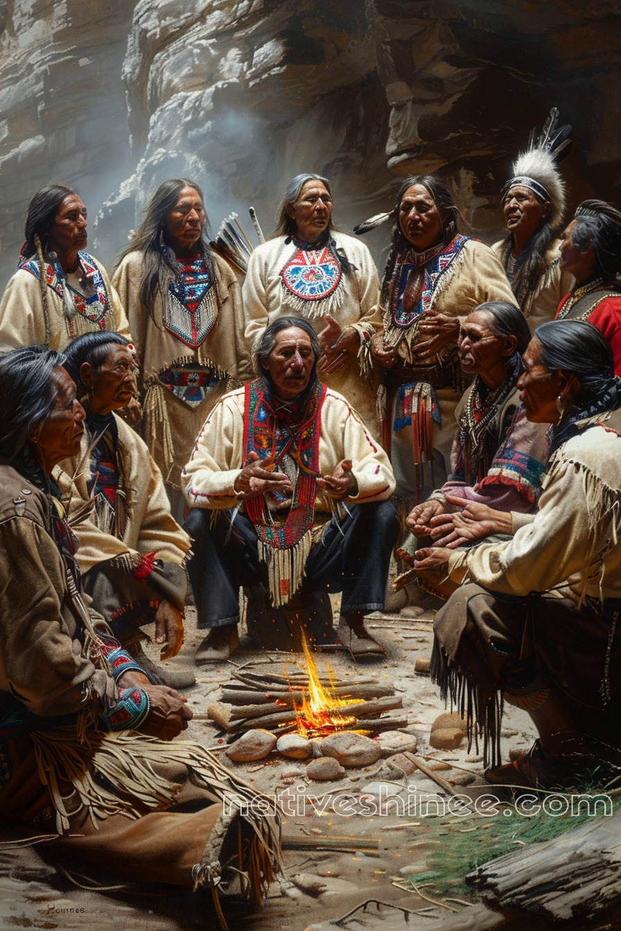 The "Circle of Tradition Native American Canvas" captures the timeless essence of Native American culture, symbolizing the cyclical nature of life, tradition, and community. The artwork portrays figures gathered in a circle, representing unity, continuity, and the passing of knowledge from one generation to the next. With rich, earthy tones and detailed imagery, this high-quality canvas reflects the strength of cultural heritage and the importance of preserving traditions. Ideal for those who appreciate Native American values and the significance of community, it adds warmth, depth, and cultural meaning to any home or office space.