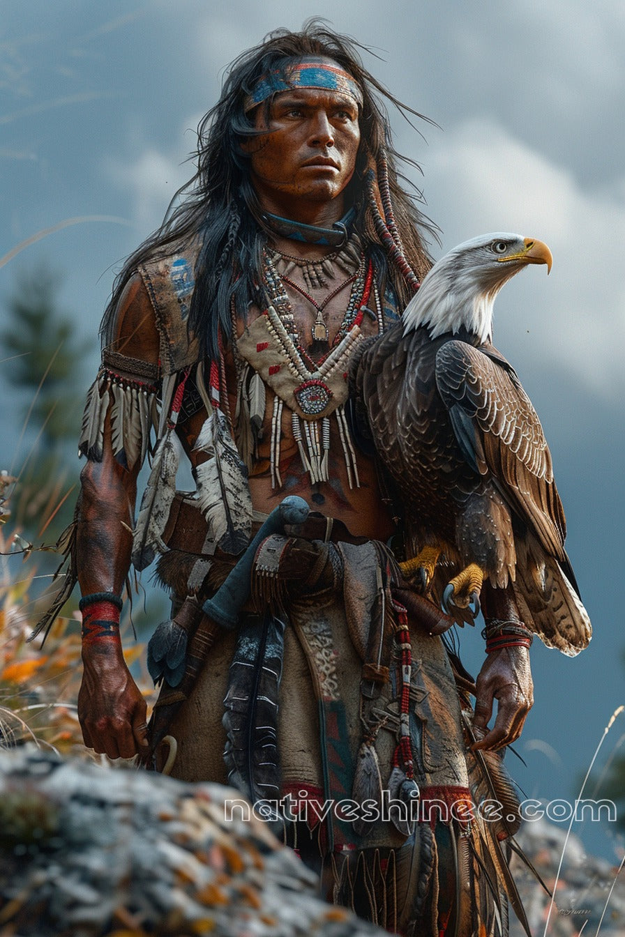 Native Warrior's Call to the Majestic Eagle Native American Canvas