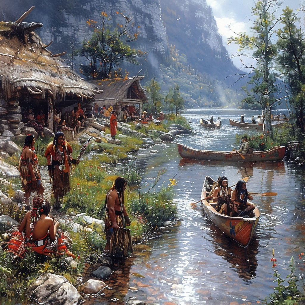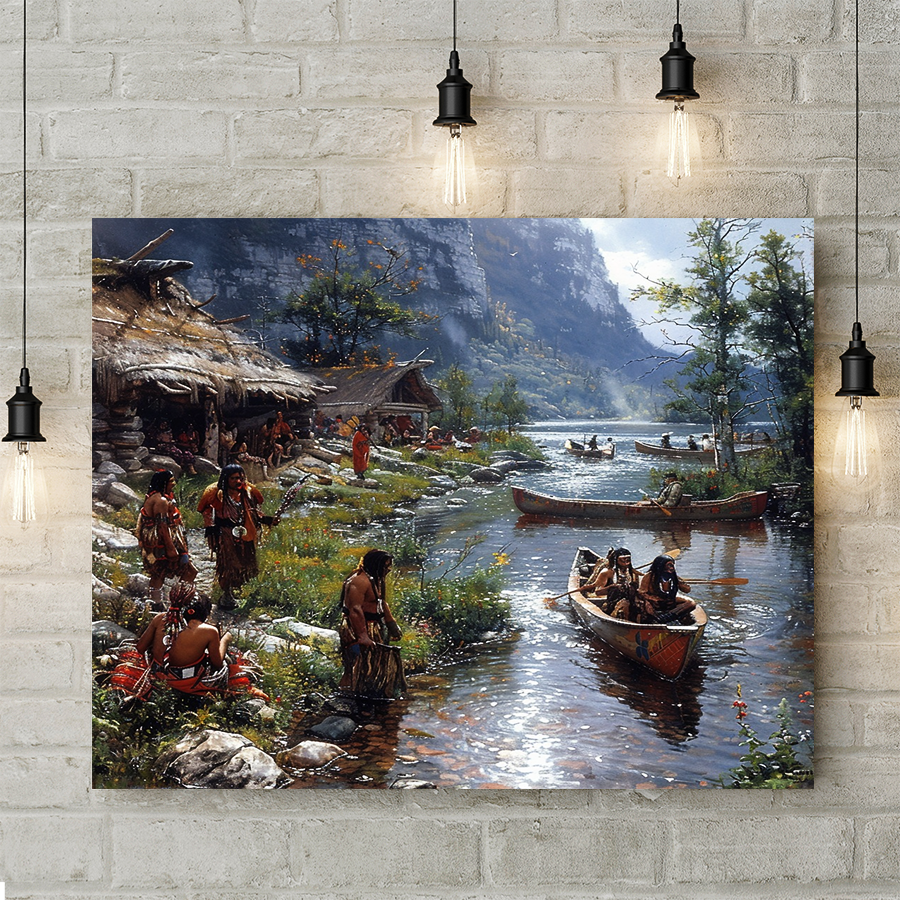 The "Flow of Traditions Native American Canvas" captures the enduring beauty of cultural heritage as it moves gracefully through generations. This artwork depicts symbols and elements that represent the rich traditions of Native American culture, flowing together in harmony like a river. With earthy tones and intricate detailing, the canvas evokes a deep connection to heritage, wisdom, and unity with nature. Ideal for those who cherish cultural expression and the preservation of legacy, this high-quality canvas brings warmth, inspiration, and a meaningful touch to any home or office décor.