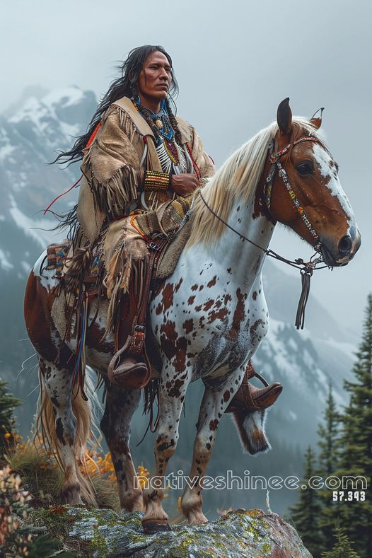 This striking canvas captures a Native American warrior atop a noble paint horse, standing resolute against a backdrop of misty, majestic mountains. Every detail—from the warrior’s traditional attire to the horse’s powerful stance—evokes a spirit of strength and guardianship. Symbolizing a deep connection with the land and the resilience of Native culture, this artwork is a celebration of heritage and nature. Perfect for any space that honors the bond between humanity and the wild, this piece invites viewers to feel the calm power of the mountain air and the steadfast spirit of the guardian.