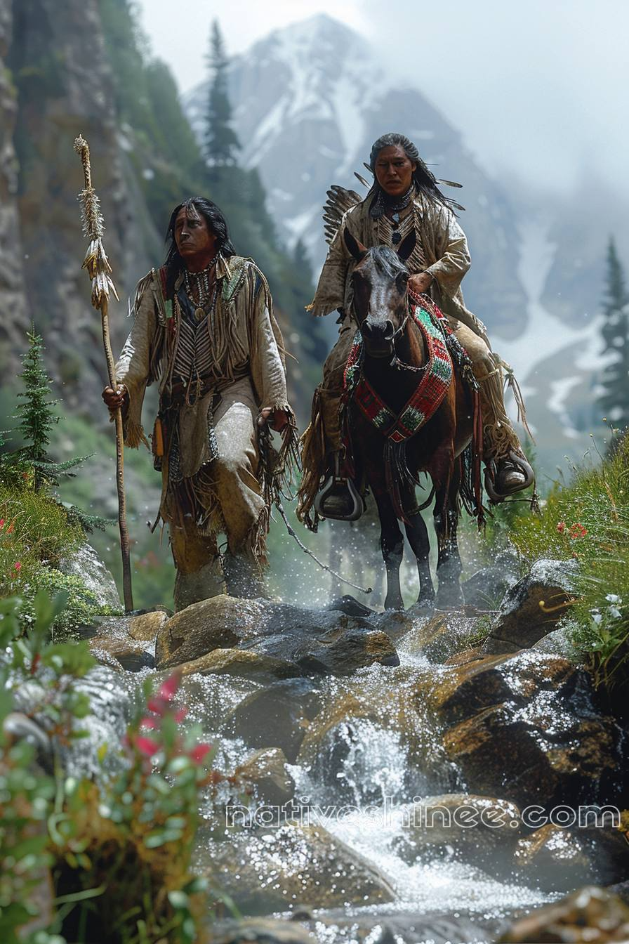 The "Guardians of Sacred Trails Native American Horse Canvas" portrays a powerful scene of Native American riders and their loyal horses journeying along ancient, revered paths. Set against sweeping landscapes, this artwork symbolizes guidance, respect, and the endurance of sacred traditions. The riders and horses, depicted with earthy tones and intricate detail, embody a profound connection to the land and ancestral ways. Ideal for those who appreciate heritage, strength, and the beauty of sacred trails, this high-quality canvas adds inspiration, reverence, and a sense of timeless resilience to any home or office décor.
