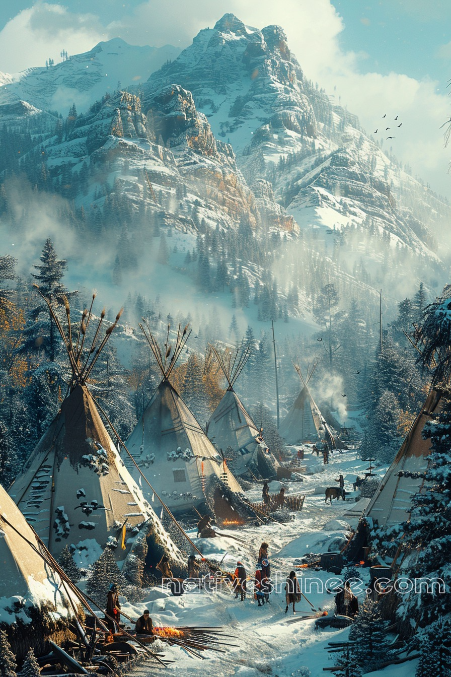 The "Harmony in the Heart of the Winter Forest Native American Canvas" captures a tranquil moment in a snowy woodland, reflecting the quiet strength and resilience of Native American traditions. Set amidst frosted trees and softly falling snow, this artwork conveys a sense of peace and unity with nature even in the harshness of winter. With cool tones and intricate details, this canvas is perfect for those who appreciate themes of harmony, survival, and the beauty of the natural world, adding a serene, timeless touch to any room.