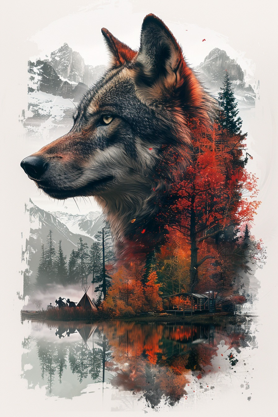 The "Harmony with Nature Wolf Native American Canvas" captures the powerful bond between Native culture and the wolf spirit, symbolizing unity, wisdom, and respect for the wild. This artwork portrays a wolf amidst natural elements, representing ancestral guidance and harmony with nature. Ideal for adding a sense of strength and tranquility to any space, this canvas celebrates the beauty of Native traditions and the deep connection with the spirit of the wolf.