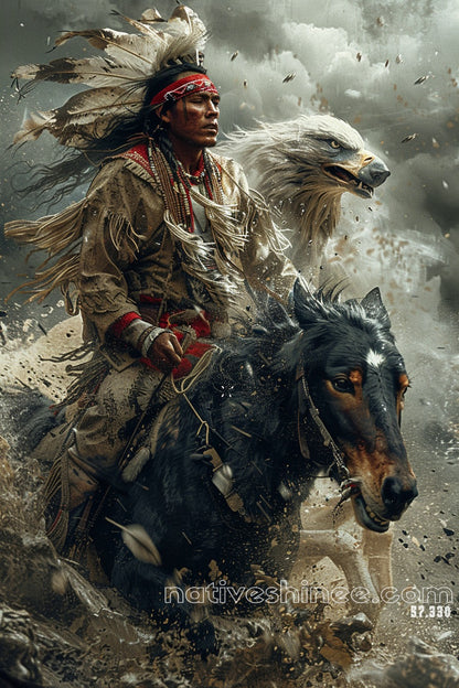 Native Warrior's Call to the Majestic Eagle Native American Canvas