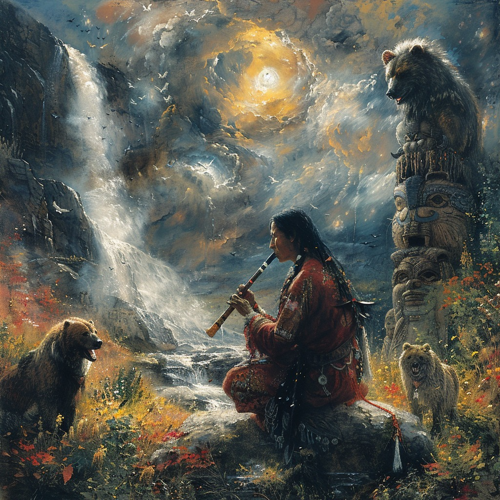Native Warrior's Call to the Majestic Eagle Native American Canvas