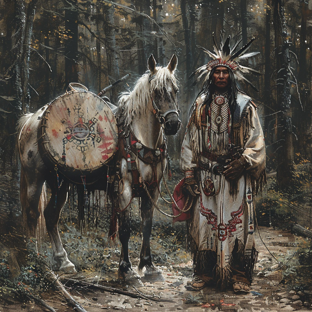 Embark on a spiritual odyssey with the Journey Through Sacred Groves Native American White Horse Canvas. This captivating artwork depicts a Native American figure gracefully guiding a white horse through an ancient, mystical grove, symbolizing purity, reverence, and the profound connection to sacred lands. The lush greenery and soft light create an atmosphere of peace and introspection. Crafted with premium-quality materials, this canvas adds a touch of cultural richness and natural elegance to your space. Perfect for those who honor Native traditions and the beauty of untouched nature, it’s a timeless celebration of harmony and heritage.