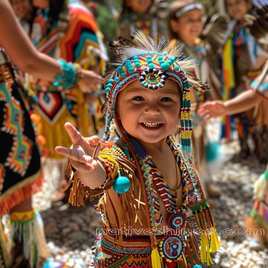 Capture the vibrant energy and pure joy of a young child immersed in Native American culture. Dressed in beautifully crafted traditional attire adorned with intricate beadwork, feathers, and vibrant colors, this little one radiates happiness and pride. Surrounded by other children, all celebrating their heritage, this canvas print is a heartwarming tribute to community, tradition, and the joyous innocence of youth. Perfect for bringing a touch of cultural celebration and warmth to any space, this artwork reminds us of the beauty found in unity and heritage.