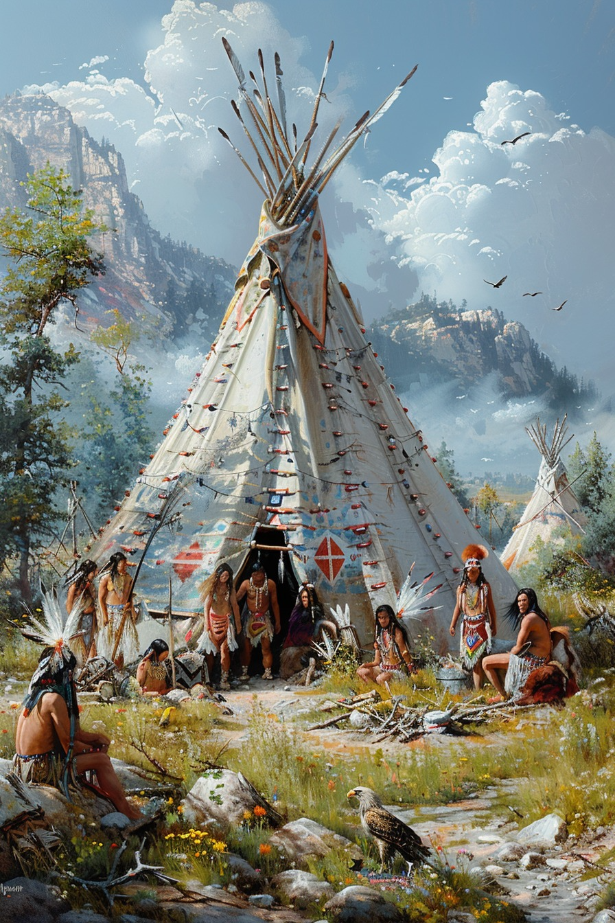 Native Warrior's Call to the Majestic Eagle Native American Canvas