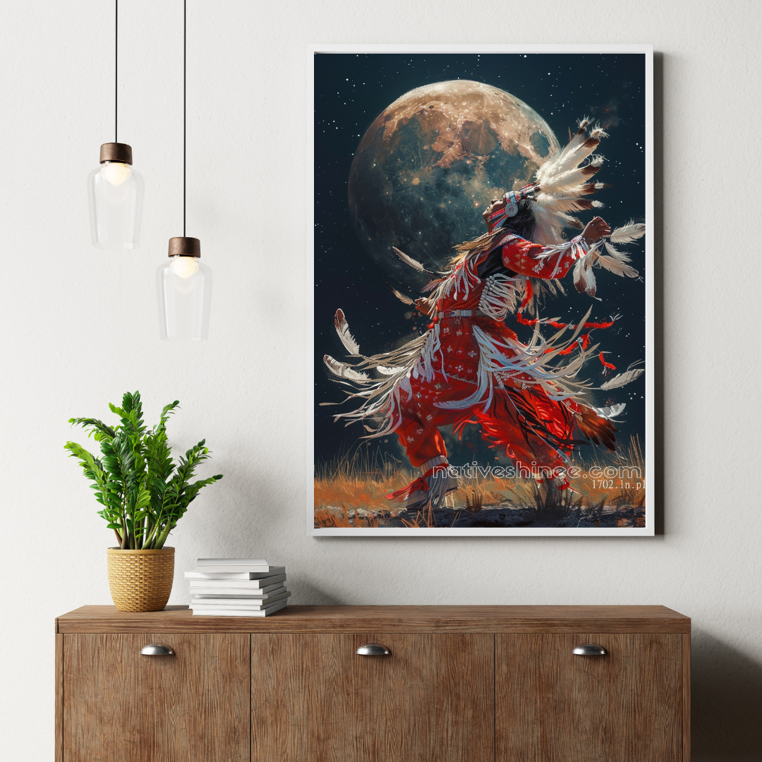 Discover the enchanting beauty of Native culture with Moonlit Dance Native American Canvas. This stunning artwork captures a Native American dancer in a magnificent traditional outfit, dancing under a mystical full moon, symbolizing freedom and deep connection to nature. Printed on high quality durable canvas with vivid details, it is the perfect choice for home décor or a meaningful gift. Bring the essence of ancestral heritage and artistic tradition into your space with this unique masterpiece. Own a timeless piece of history and culture order now